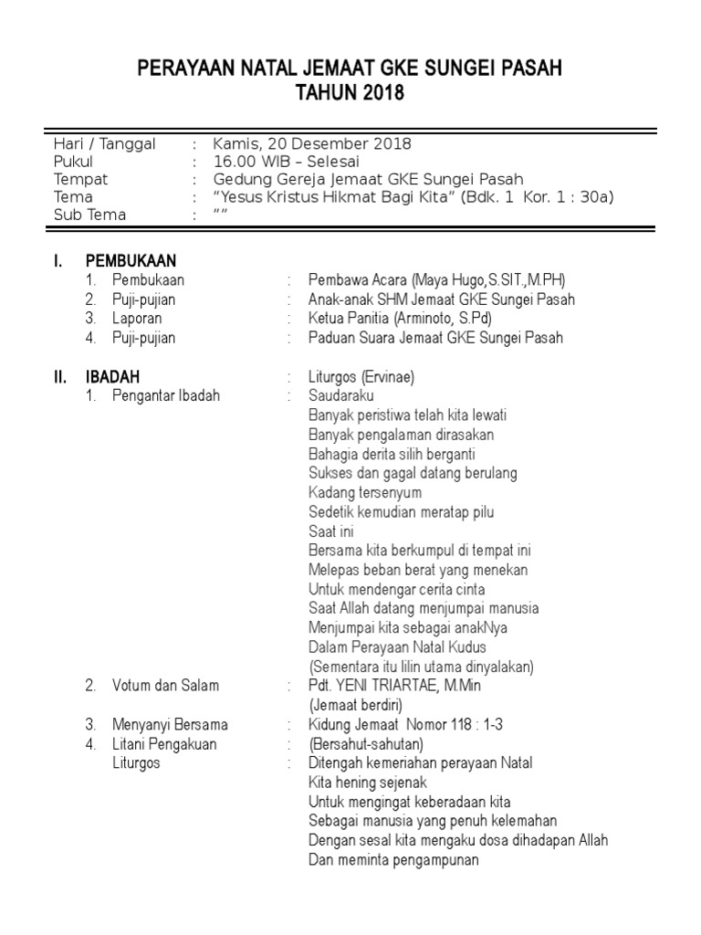 Perayaan natal yang sukses tentu akan terjadi apabila adanya kerjasama antara gembala dan seluruh jemaat serta. Malam kudus, jumat 24 selamat hari natal, tuhan yesus juru slamat hidup kita. Persiapan perayaan natal dibutuhkan beberapa minggu sebelum acara tersebut di laksanakan, salah satunya adalah. Liturgi asm yang menghapal 1 aku adalah terang. Santa maria tak bercela paroki.